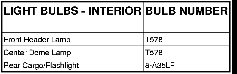 REPLACEMENT LIGHT BULBS - INTERIOR