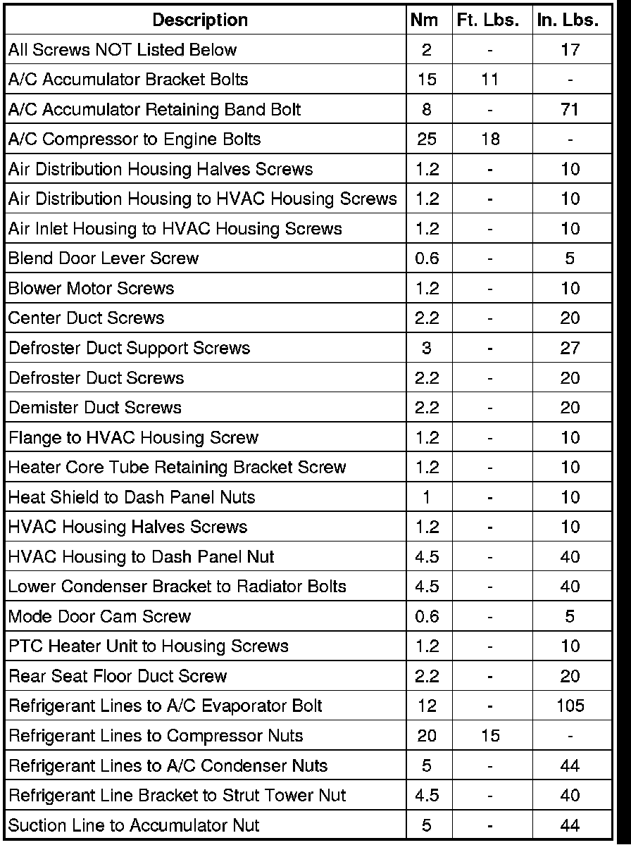 Heating and Air Conditioning Specifications - Fastener Torque