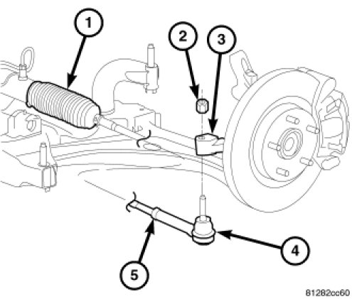 NOTE: Prior to attaching the outer tie rod end to the knuckle, inspect the tie rod seal boot. If the seal boot is damaged, replace the outer tie rod end.