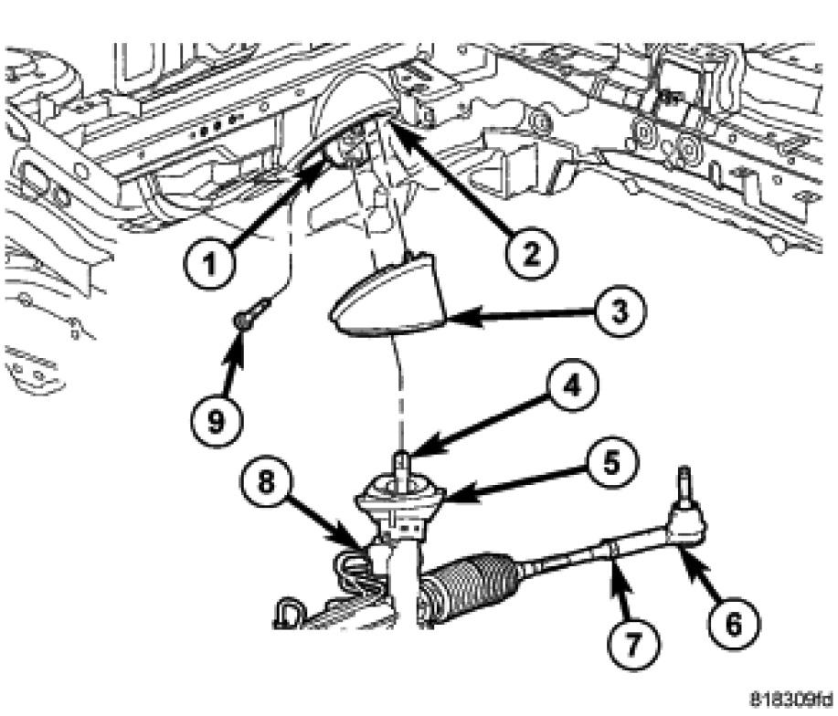 22. Center the intermediate shaft (2) over the steering gear pinion shaft (4), lining up the ends, then slide the intermediate shaft onto the steering gear pinion shaft.