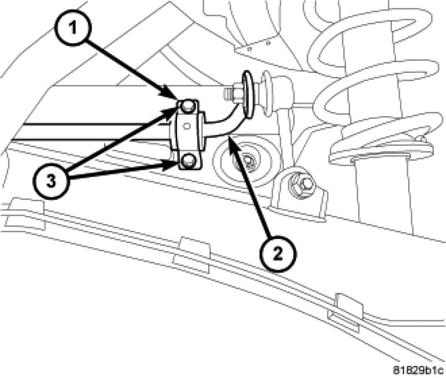 2. Position the stabilizer bar (2) on the rear crossmember.