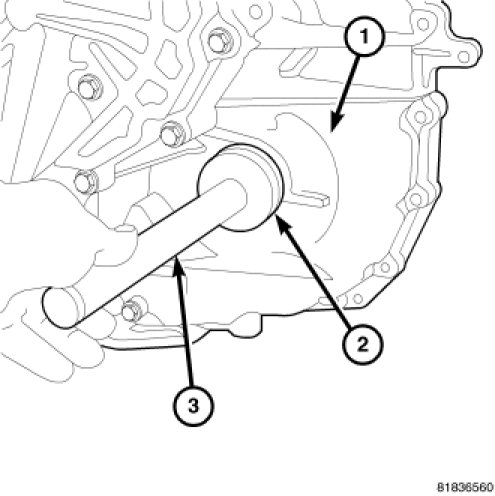 Install the left side differential oil seal using Installer 9871 (2) and Handle C-4171 (3).