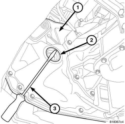 Remove the seal (2) form the transaxle using a screwdriver (3).
