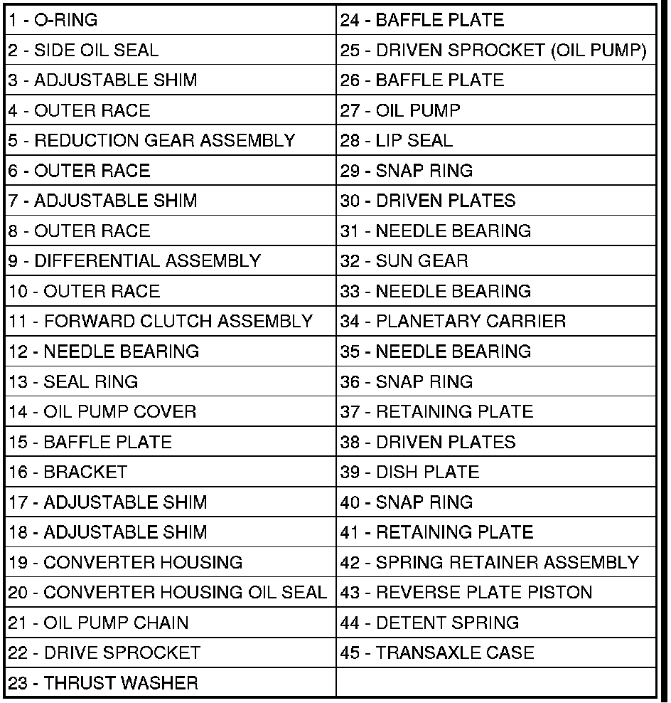 29. Remove the reduction gear assembly (1) from the transaxle case.