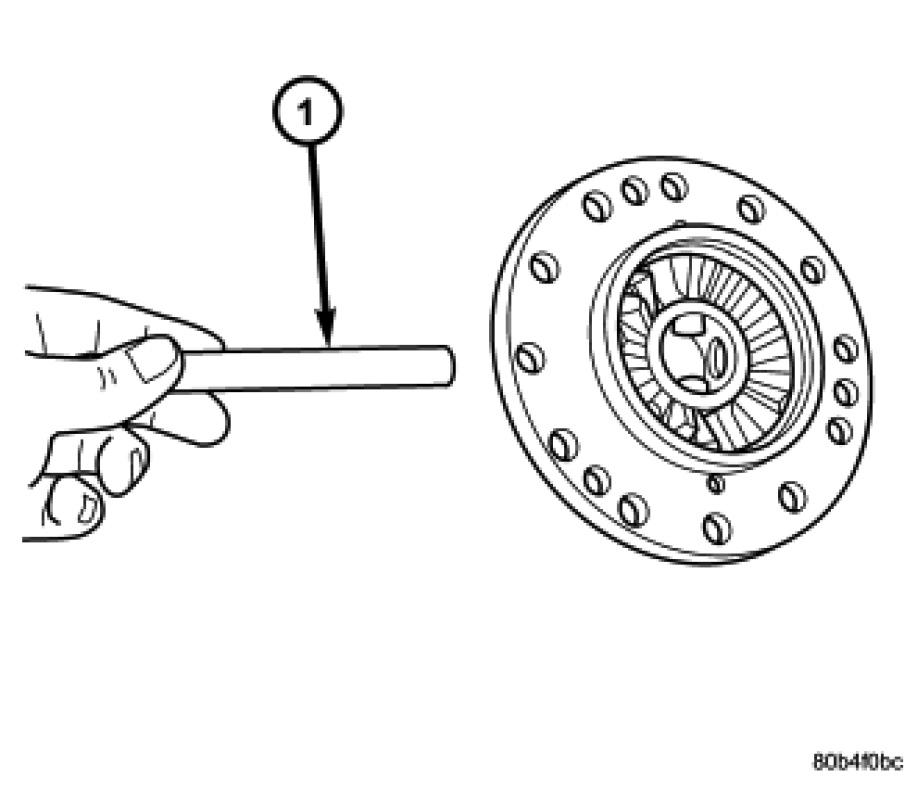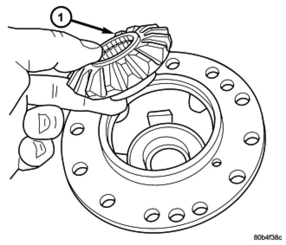 3. Using the smallest end play recorded, shim that side gear to within 0.001 to 0.013 inch. The other side gear should be checked using the same procedure.
