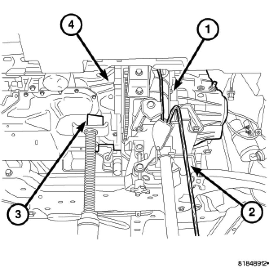 7. Install the rear transmission mount through bolt (4) at this time and tighten to 68 Nm (50 ft. lbs.).