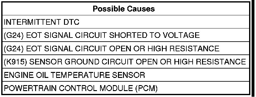The PCM detects that the Engine Oil Temperature Sensor input voltage is above the maximum acceptable value.