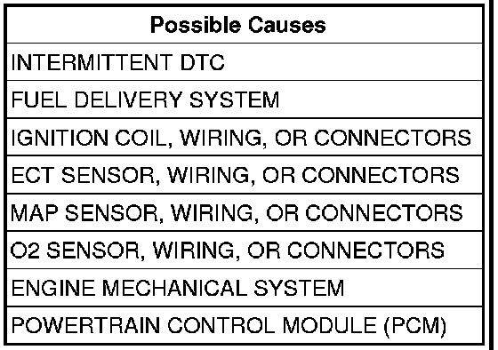 NOTE: Misfire may occur and may not be caused by component failure. Any of the following conditions can cause a misfire: