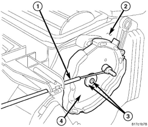 9. Remove the screw and washer (3) that secure the mode door cam (4) to the air distribution housing and remove the cam.