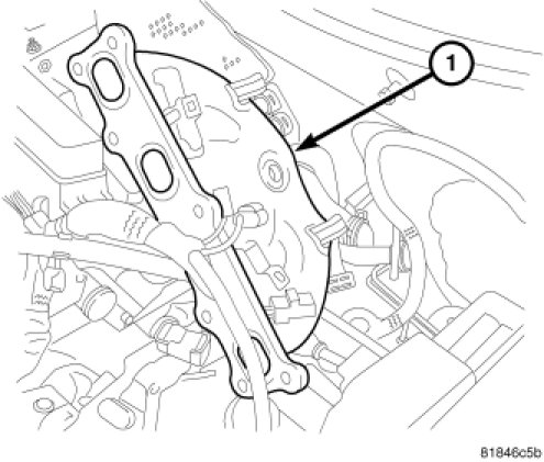 2. Using new gasket, install maniverter (1) and mounting bolts. Tighten bolts to 28 Nm (250 in. lbs.).
