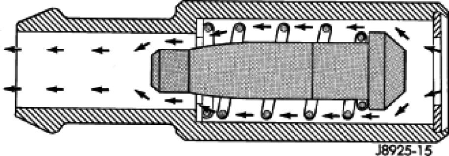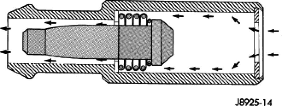 When the engine is not operating or during an engine backfire, the spring forces the plunger back against the seat. This prevents vapors from flowing through the valve.