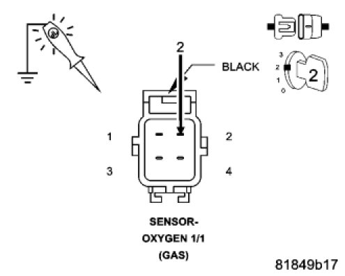 Using a 12 volt test light connected to ground, check the (K99) O2 1/1 Heater Control circuit in the Oxygen Sensor 1/1 harness connector.