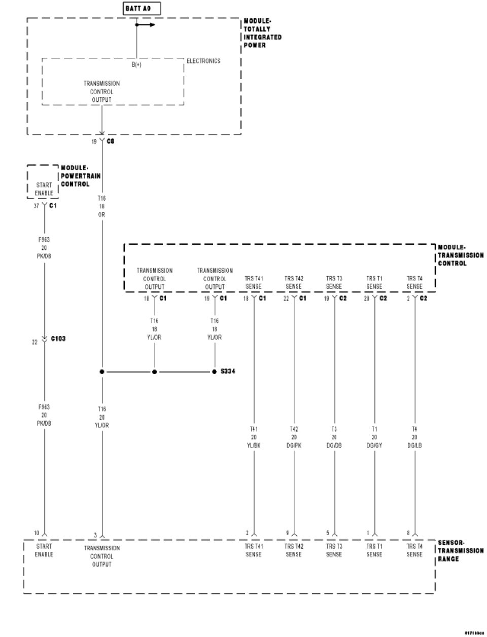 NOTE: If the Transmission Range Sensor is unplugged the vehicle will not start.