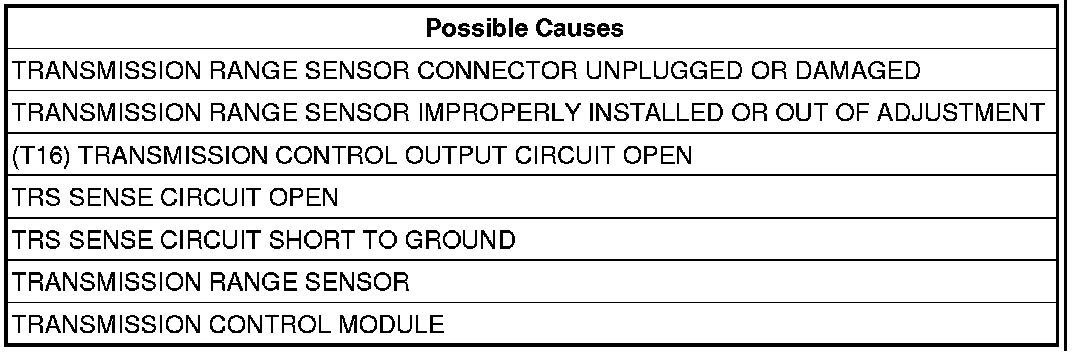No other Transmission Range Sensor (TRS) DTCs present.