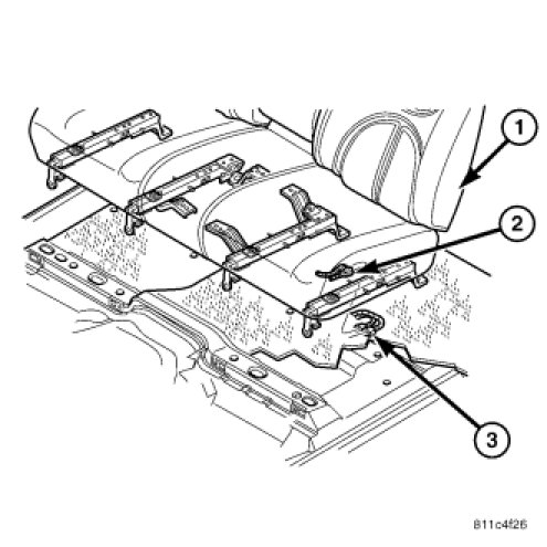 The wire harness connectors (2 & 3) for the heating elements are located under the seat (1).
