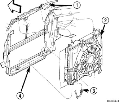 4. Install radiator fan/shroud assembly. Hand start fasteners.