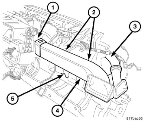 2. Connect the driver side instrument panel duct to the center duct (4). Make sure the ducts are fully engaged to each other.