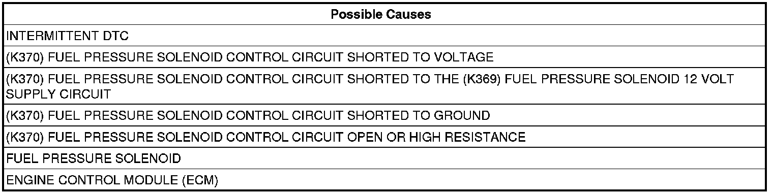 - Repair the (K370) Fuel Pressure Solenoid Control circuit for a short to voltage.