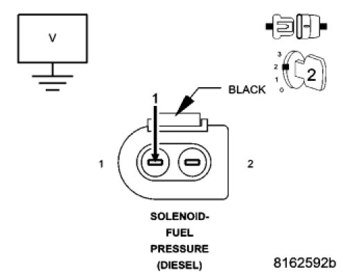 Using a 12 volt test light connected to 12 volts, check the (K370) Fuel Pressure Solenoid Control circuit in the Fuel Pressure Solenoid harness connector.