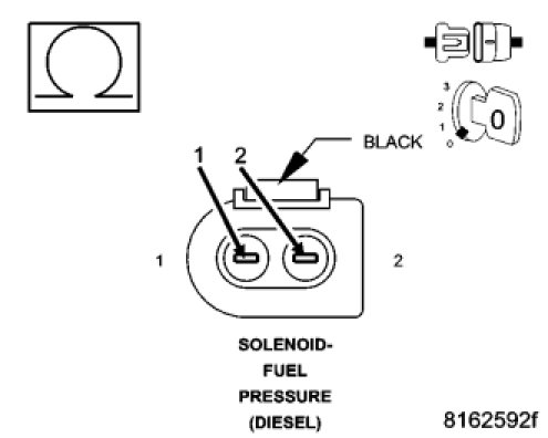 Measure the resistance between the (K370) Fuel Pressure Solenoid Control circuit and the (K369) Fuel Pressure Solenoid 12 Volt Supply in the Fuel Pressure Solenoid harness connector.
