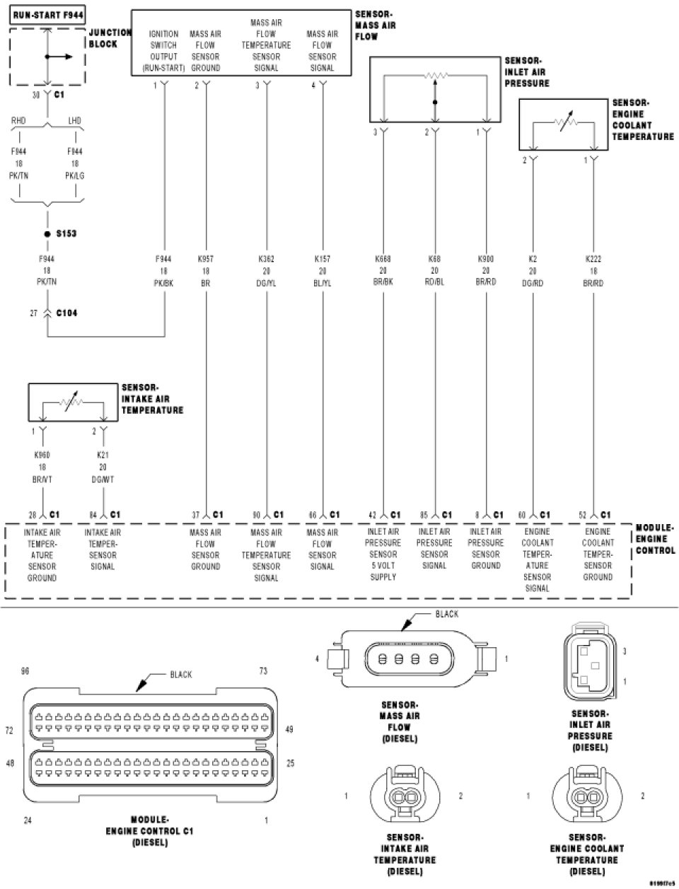 6. (K157) MASS AIR FLOW SENSOR SIGNAL CIRCUIT SHORTED TO GROUND