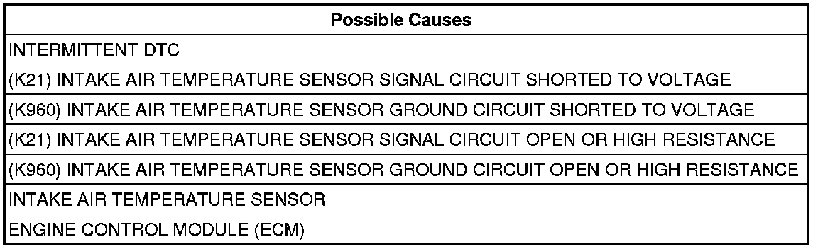 - Repair the (K960) Intake Air Temperature Sensor Ground circuit for an open circuit or high resistance.