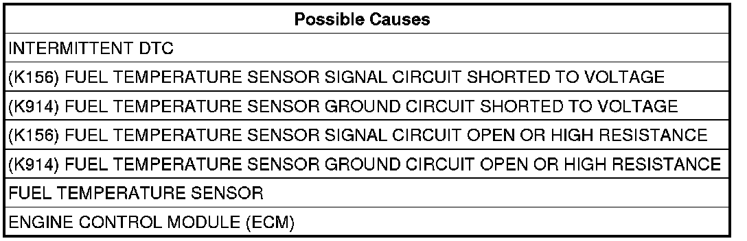 - Repair the (K914) Fuel Temperature Sensor Ground circuit for an open circuit or high resistance.