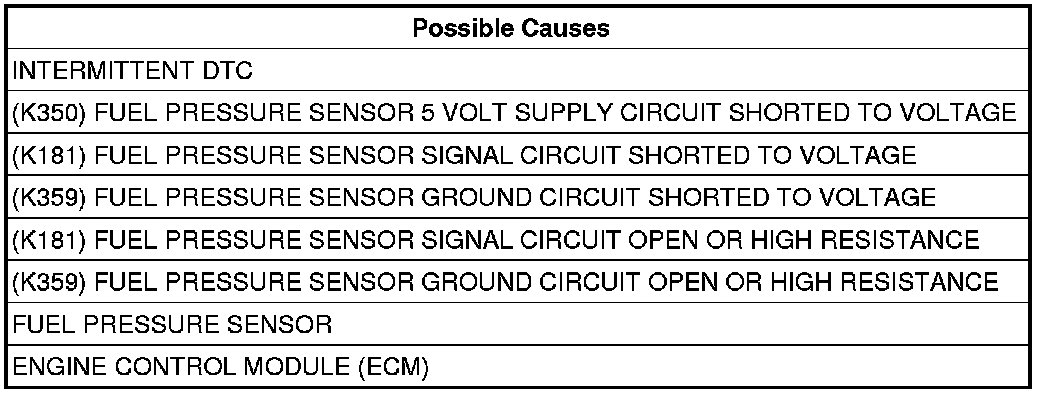 - Repair the (K181) Fuel Pressure Sensor Signal circuit for a short to voltage.