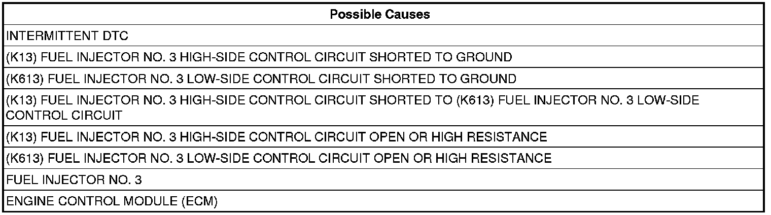 3. (K613) FUEL INJECTOR NO. 3 LOW-SIDE CONTROL CIRCUIT SHORTED TO GROUND