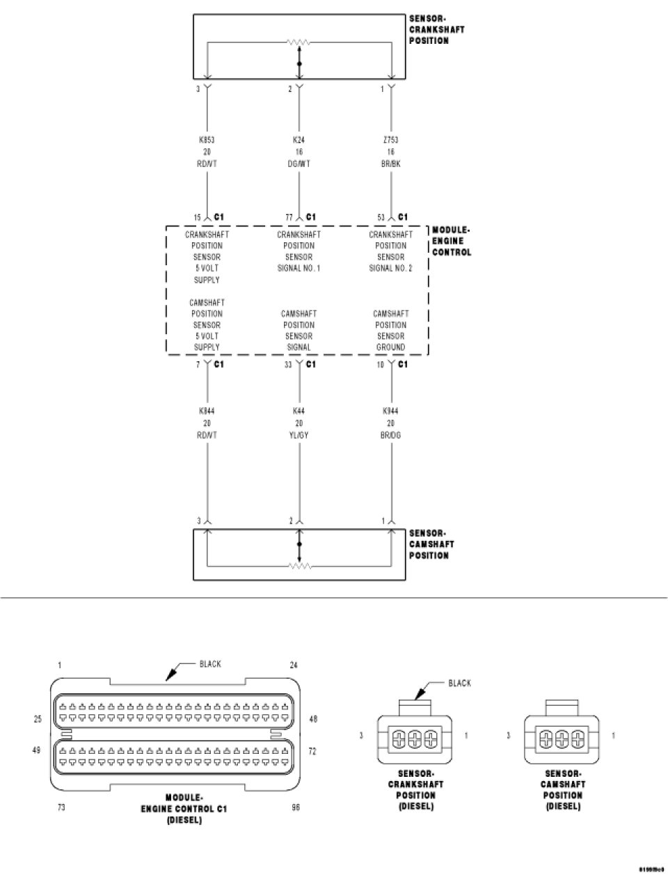 - Repair the (K844) CMP Sensor 5-Volt Supply and (K944) CMP Sensor Ground circuits for a short together.