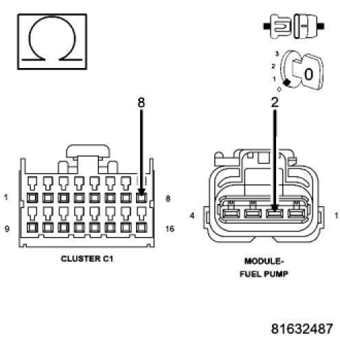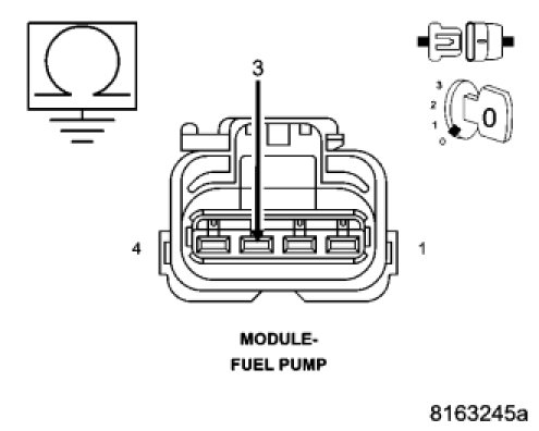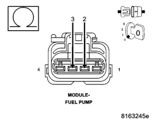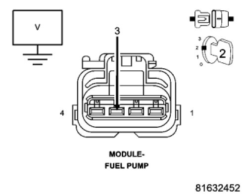 NOTE: The scan tool should display a Fuel Level Sensor high voltage or open circuit DTC with the Fuel Pump connector disconnected.