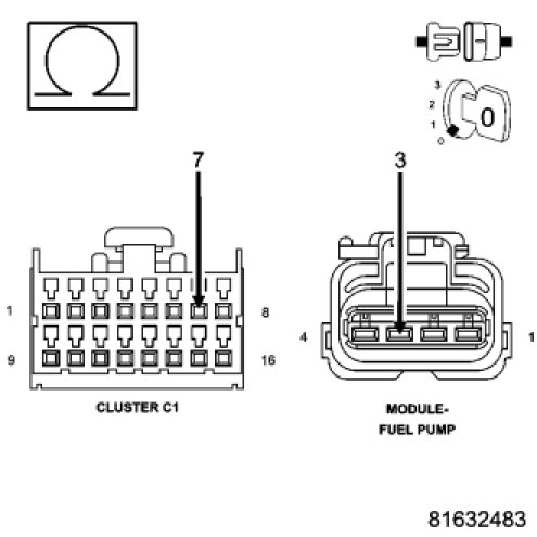 Using the wiring diagram/schematic as a guide, inspect the wiring and connectors between the Fuel Pump and the Instrument Cluster (CCN).