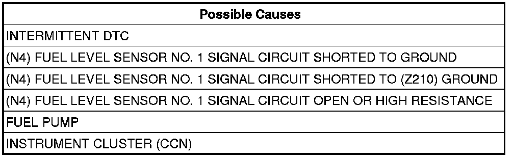 - Repair the (N4) Fuel Level Sensor No. 1 Signal circuit for a short to the (Z210) Ground circuit.