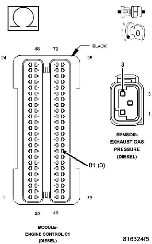 - Repair the (K35) Exhaust Gas Pressure Sensor Signal circuit for a short to the (K934) Exhaust Gas Pressure Sensor Ground circuit.