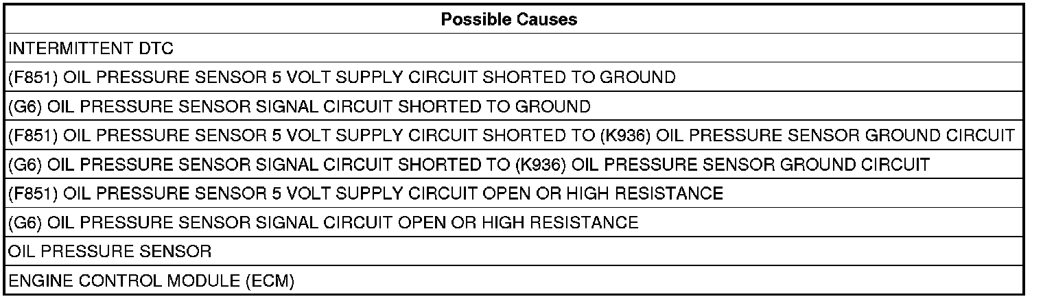 - Repair the (G6) Oil Pressure Sensor Signal circuit for a short to ground.