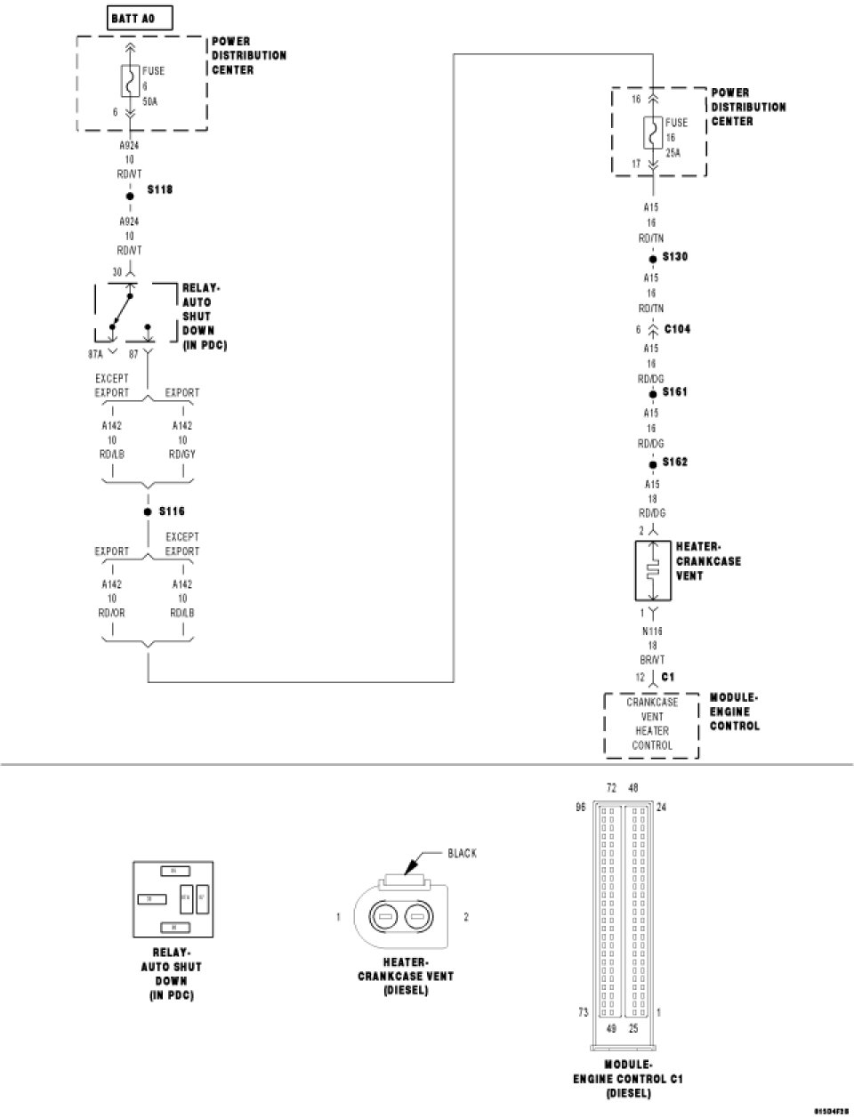 2. (N116) CRANKCASE VENT HEATER CONTROL CIRCUIT SHORTED TO GROUND