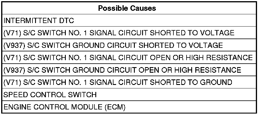 - Repair the (V71) S/C Switch No. 1 Signal circuit for an open circuit or high resistance.