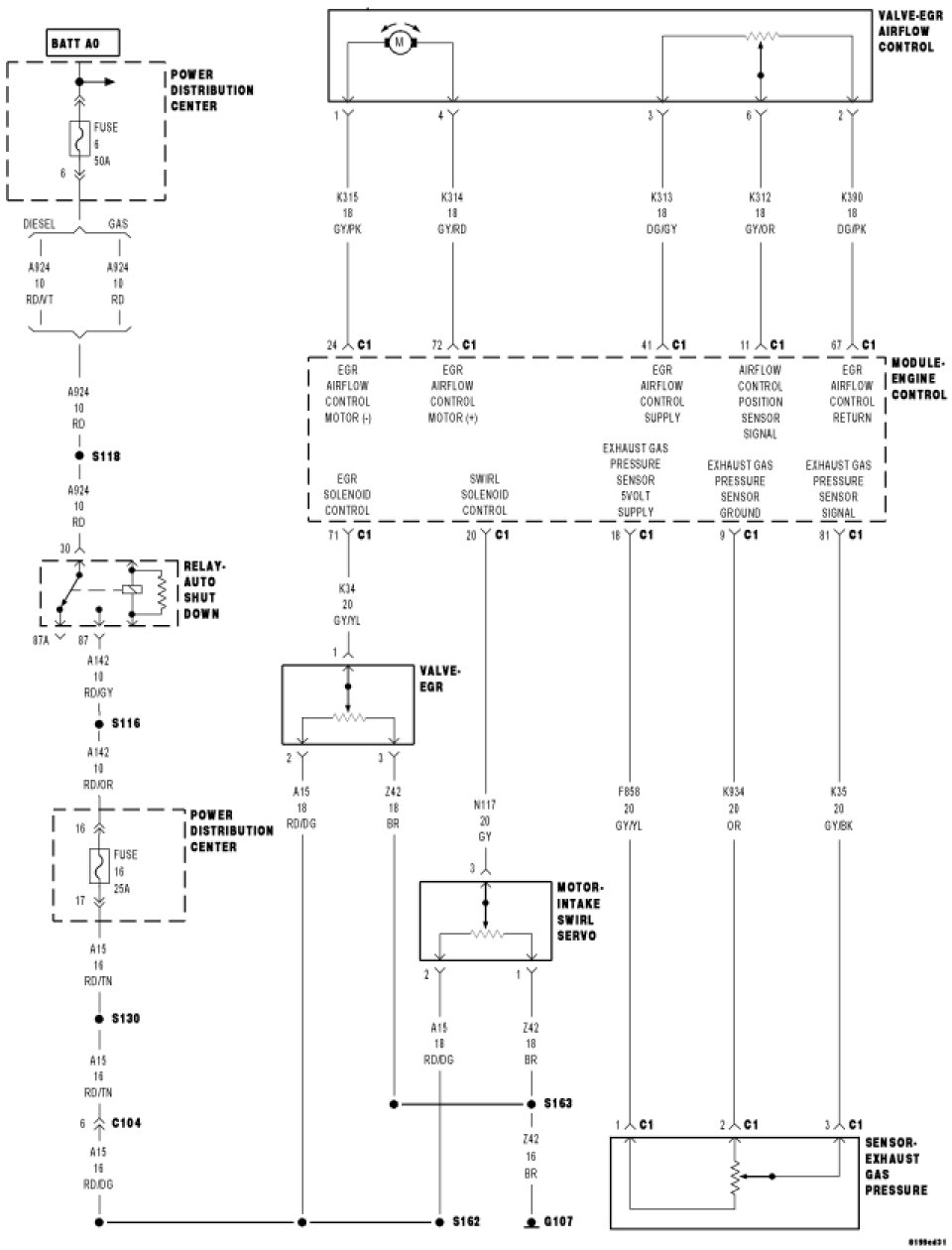 - Repair the (K314) EGR Airflow Control Valve Motor (+) circuit for a short to the (K315) EGR Airflow Control Valve Motor (-) circuit.