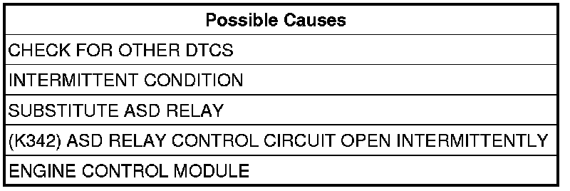 - Repair the ASD Relay Control circuit for an intermittent open.