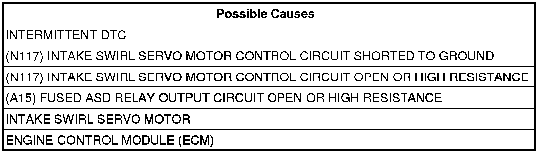 2. (N117) INTAKE SWIRL SERVO MOTOR CONTROL CIRCUIT SHORTED TO GROUND