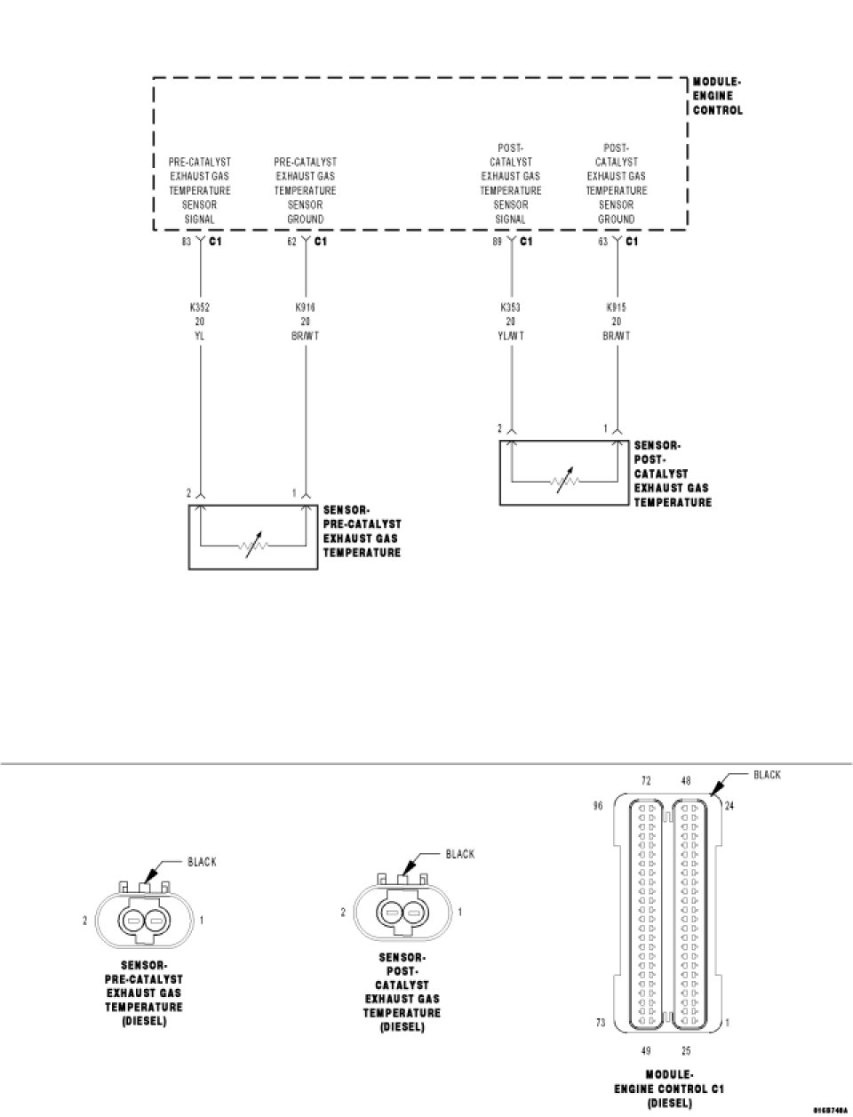 3. (K353) POST-CATALYST EXHAUST TEMPERATURE SENSOR SIGNAL CIRCUIT SHORTED TO (K915) POST-CATALYST EXHAUST TEMPERATURE SENSOR GROUND CIRCUIT