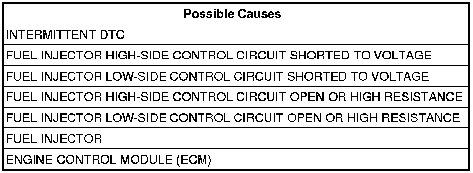 NOTE: This DTC can set as a result of a fault in any of the injector circuits. Be sure to check all injector circuits before replacing an injector and all injectors before replacing a module.