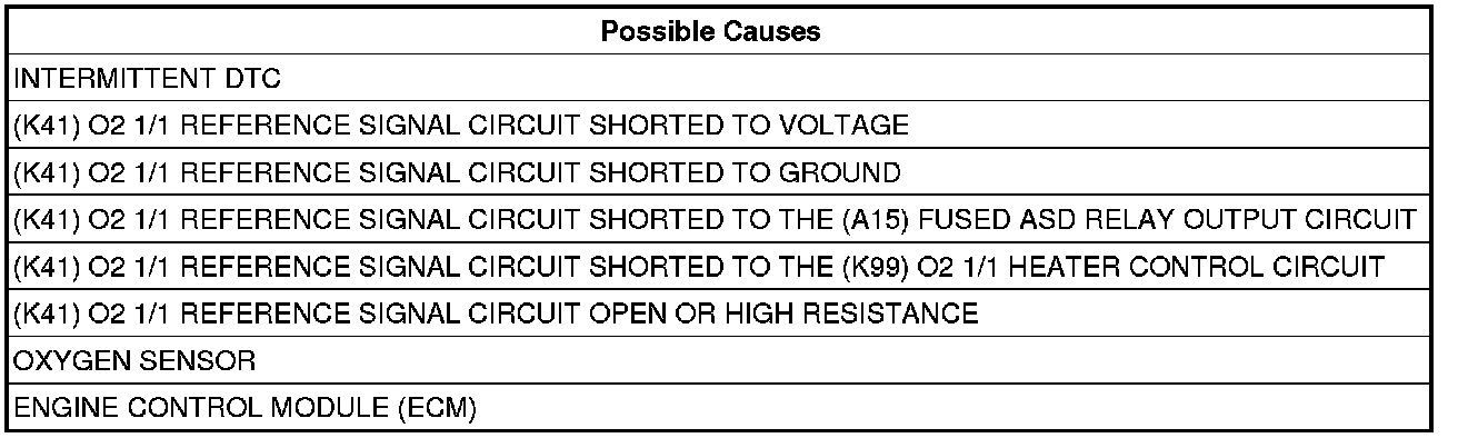 - Repair the (K41) O2 1/1 Reference Signal circuit for a short to voltage.