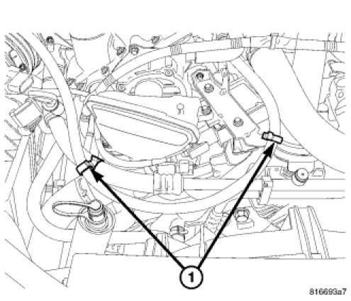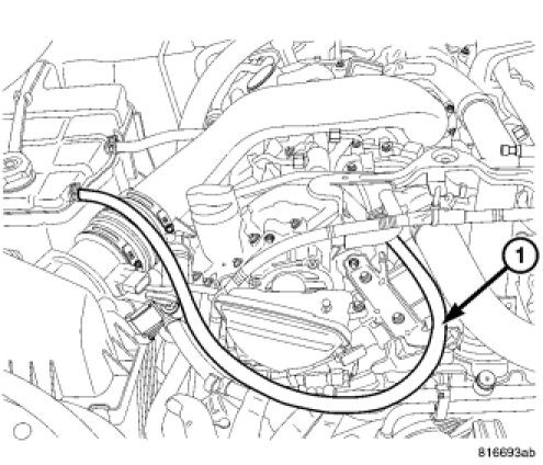 7. Reinstall the thermostat housing bleed hose in the two clips.