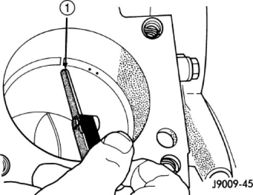 1. Wipe cylinder bore clean. Insert ring and push down with piston to ensure it is square in bore. The ring gap measurement must be made with the ring positioning at least 12 mm (0.50 in.) from bottom of cylinder bore. Check gap with feeler gauge (1). Top compression ring gap.40 to.55mm (.015in to.0217 in.). Second compression ring gap.25mm to.50mm (.0099 to.0197 in.). Oil control ring gap.20 to.40mm (.0079 to.0158 in.).