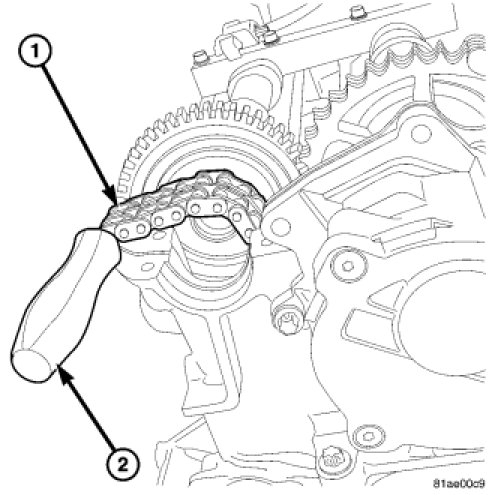 1. Use a small screwdriver to prevent the timing chain from slipping down into the engine.