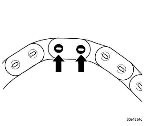 CAUTION: Always install the new timing chain with the oil holes pointing up. Failure to do so will result in severe engine damage.