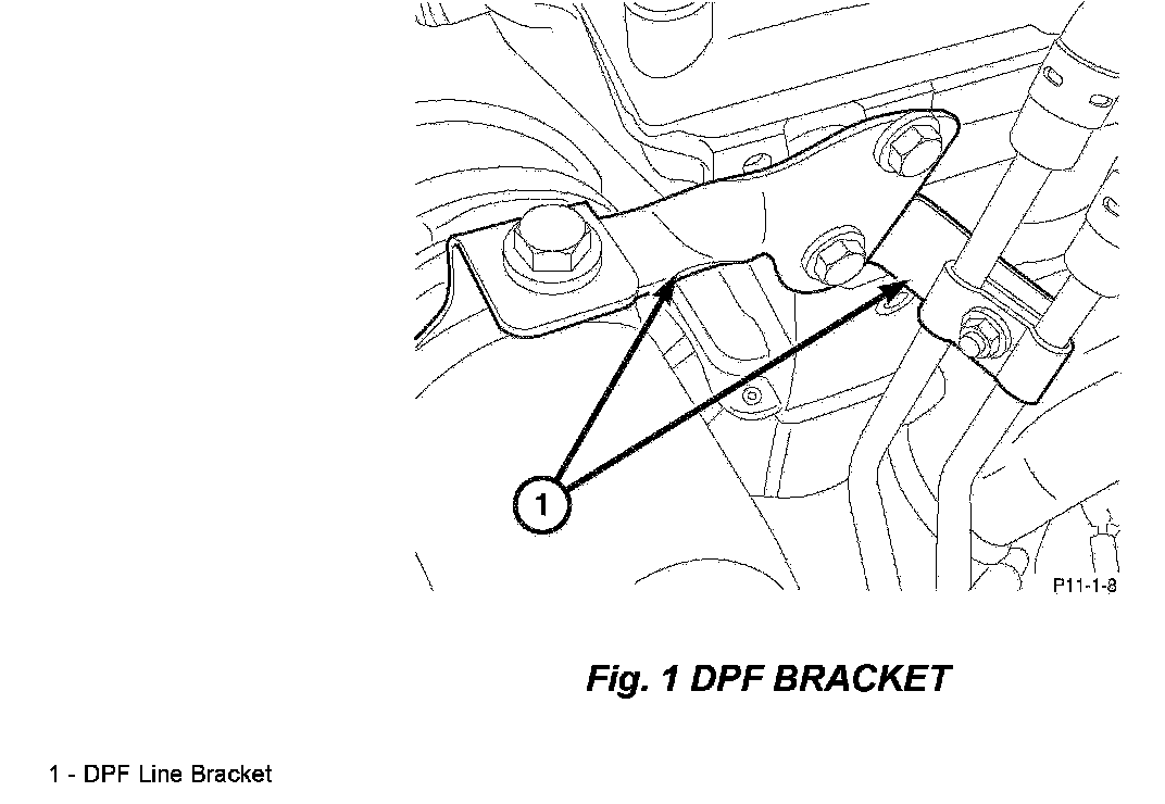 2. Remove the DPF bracket from the DPF lines to the engine and discard bracket and bolt. (Fig. 1).