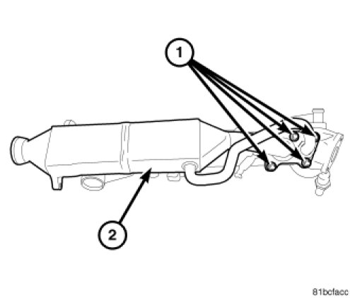 retaining bolts (1) and EGR cooler (2).