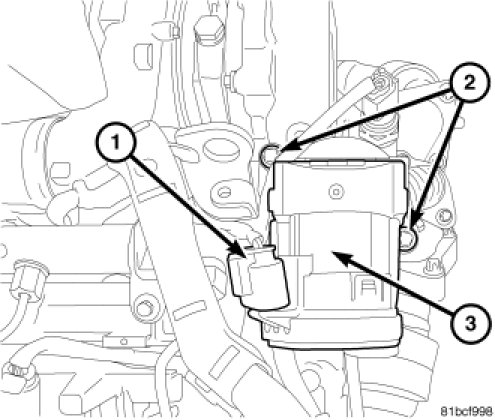 2. Lubricate the seal and install the EGR valve (3) in intake manifold. Tighten EGR valve retaining bolts (2) to 9 Nm (80 lbs.in).